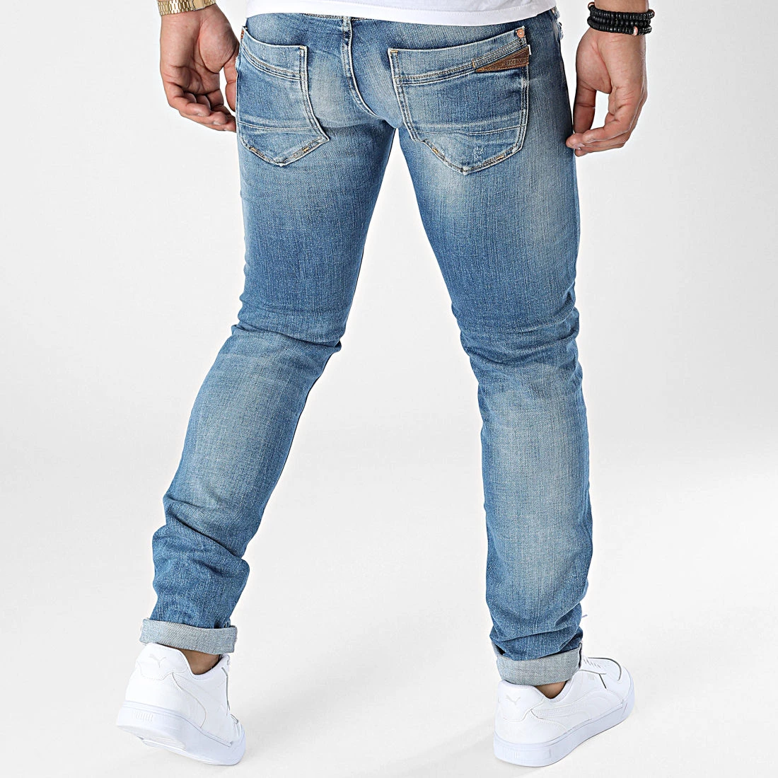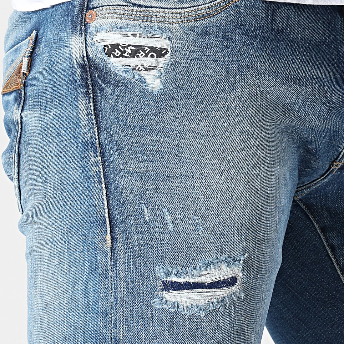 • Jean slim tendance finition délavée et usée avec rapiéçages
