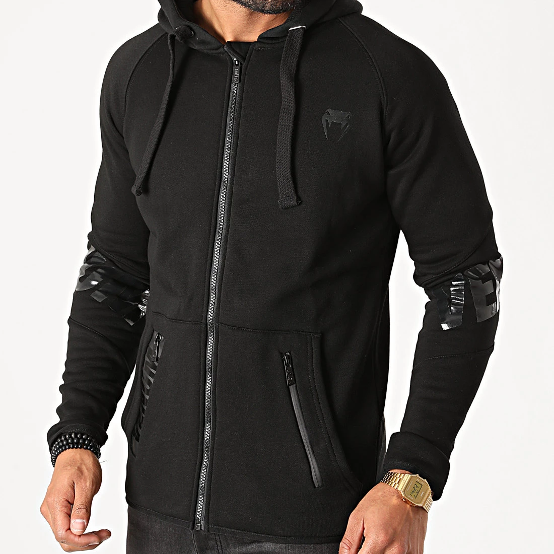 • Sweat capuche zippé imprimé sur l’avant et les manches