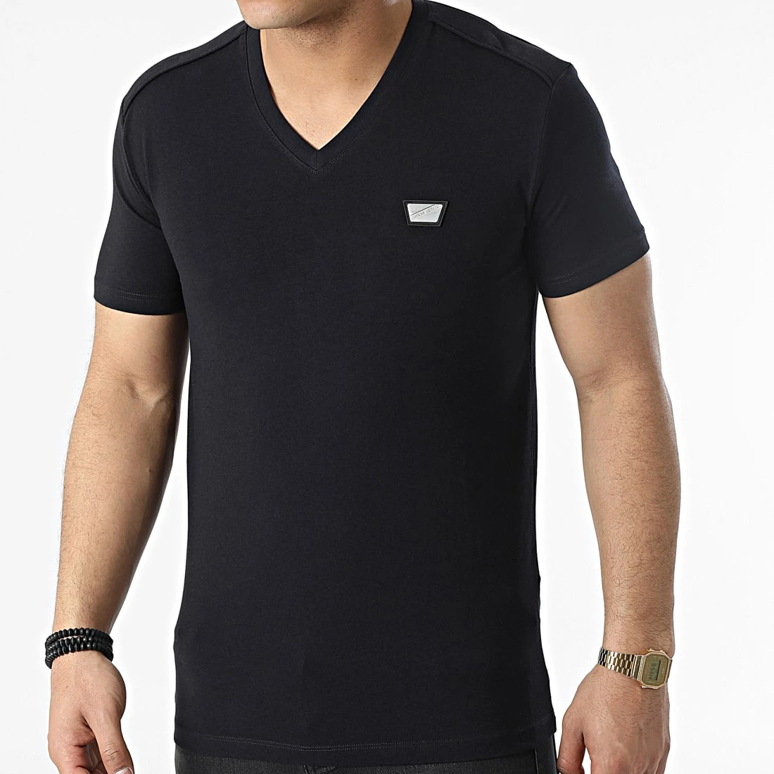 • Tee shirt en coton stretch avec patch métallique Antony Morato sur la poitrine