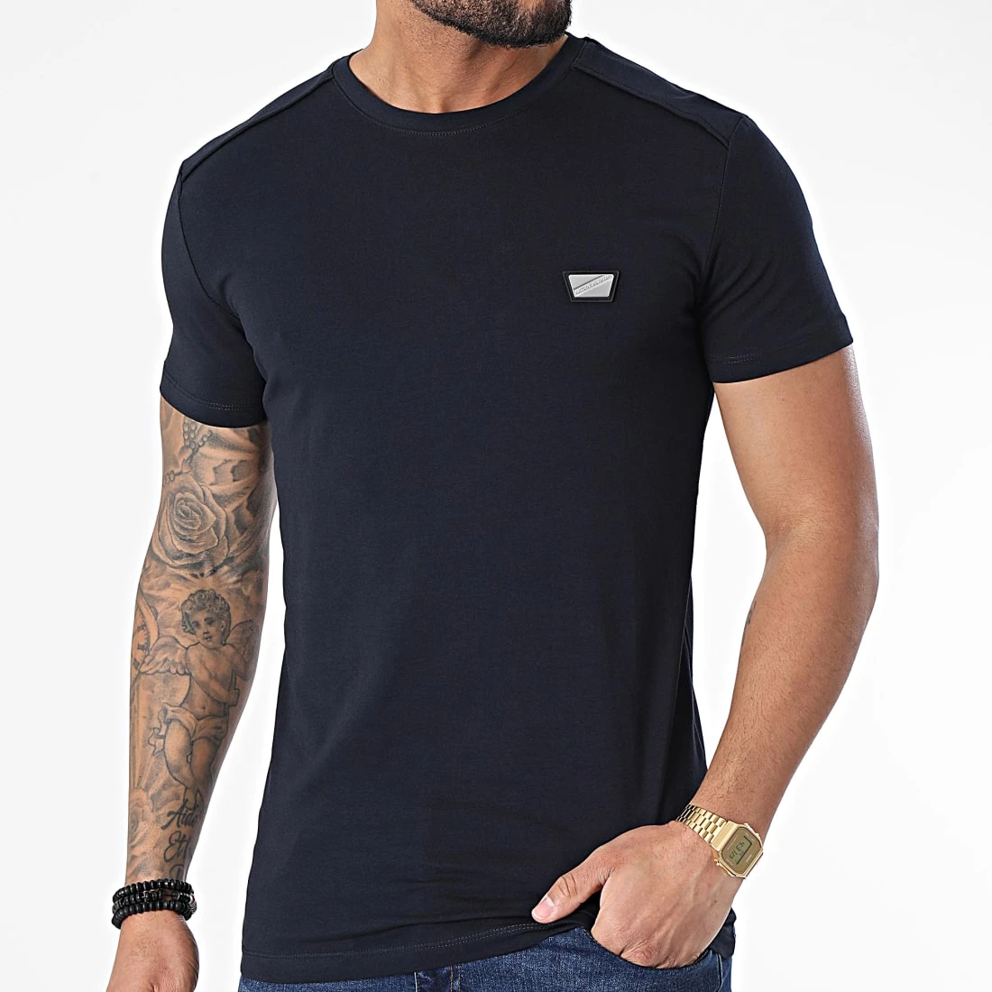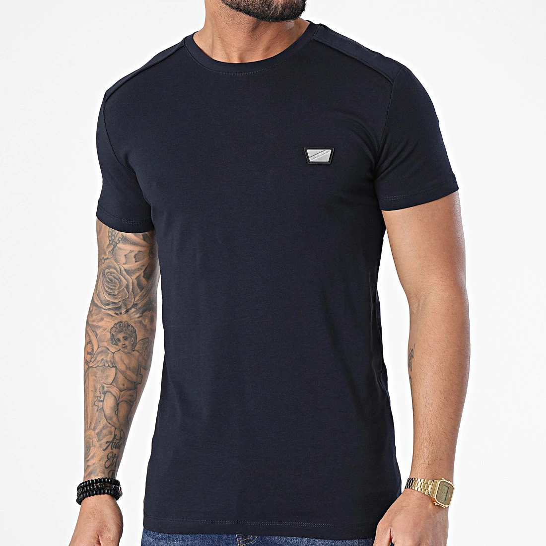 • Tee shirt en coton stretch avec patch métallique Antony Morato sur la poitrine